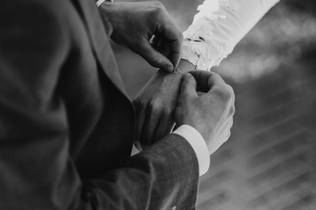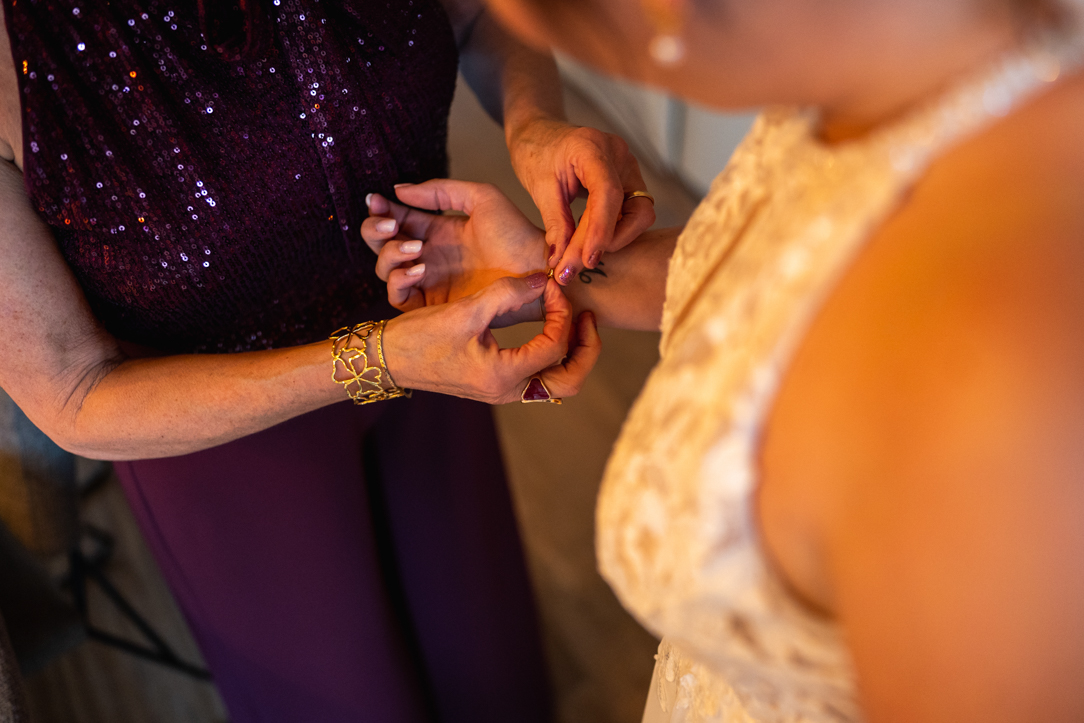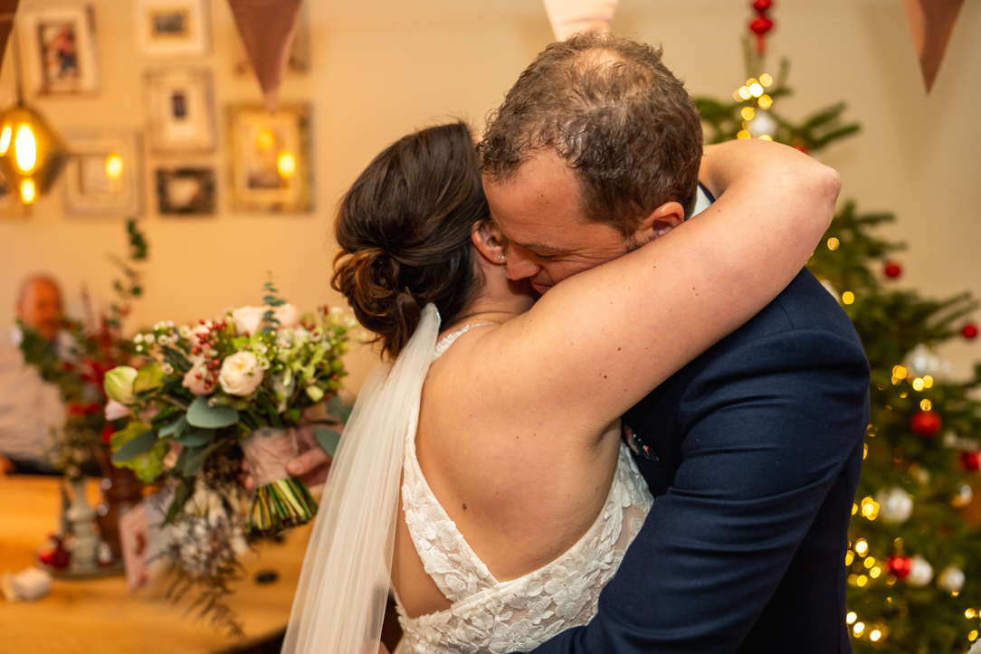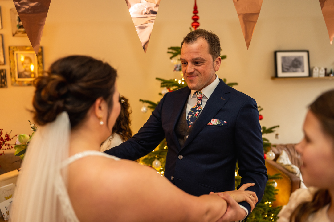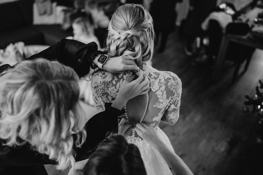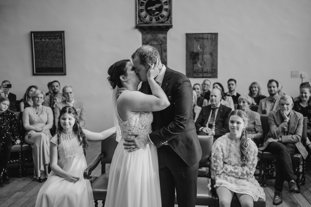 Na de eerste voorbereidingen vertrok ik richting Staphorst, waar Rosanne zich klaarmaakte bij haar ouders thuis. Daar vond ook hun first look plaats. Een bijzonder en intiem moment, midden in een vertrouwde omgeving. Samen met de mensen die dicht bij hun staan! De emoties waren puur, oprecht en precies zoals je hoopt dat ze zijn op zo’n dag!