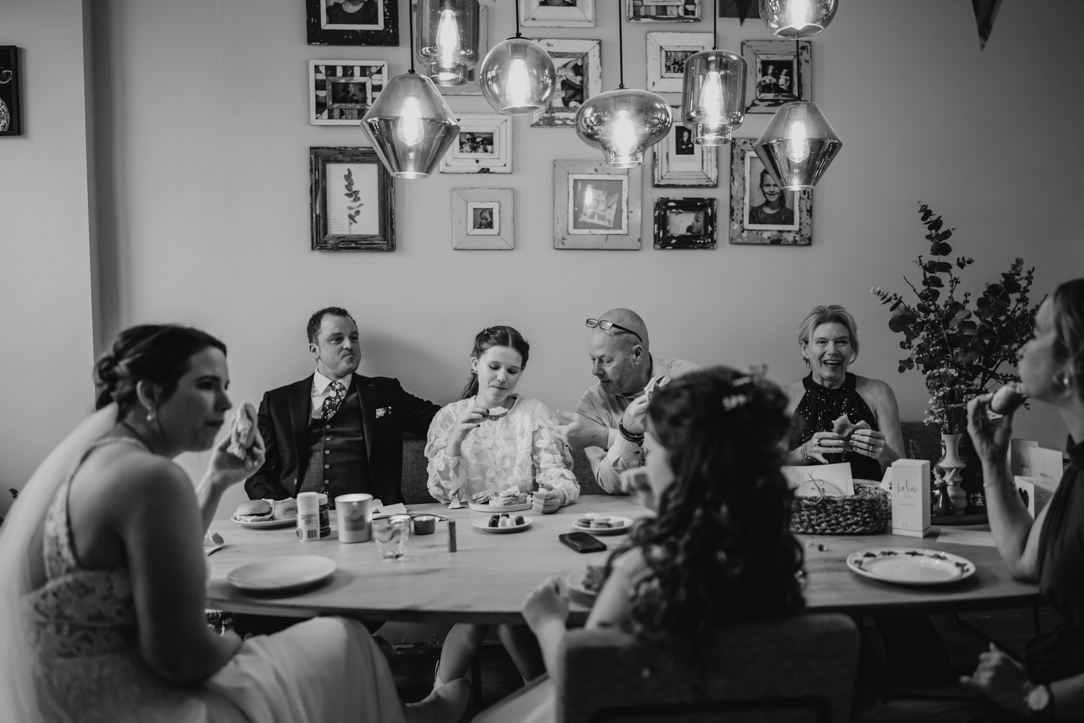 Wat deze bruiloft extra bijzonder maakte, was dat de gasten aan het einde van de dag al een herinnering mee naar huis kregen. Ondertussen maakte ik namelijk een foto gereed die direct werd klaargemaakt als bedankfoto. Een prachtig aandenken aan een dag vol liefde!